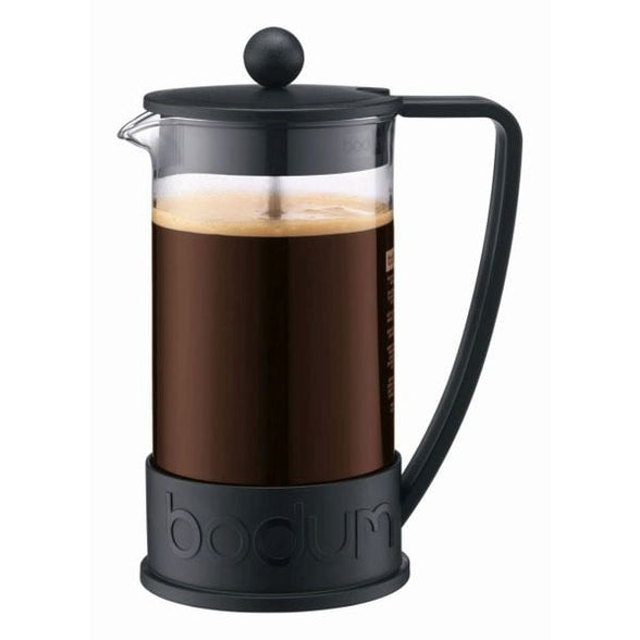 BODUM's first coffee maker, the BRAZIL was originally designed in the 1980s and offers attractive and functional design at an affordable price. Built with a heat resistant, borosilicate glass beaker and polypropylene handle and base. The domed lid is made of smooth polypropylene and includes the special Bodum safety and aroma seal to keep coffee warm for a long time. Just add coarse ground coffee, hot water and press